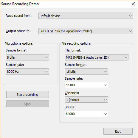 Unten finden Sie kompilierte Demoprojekte, die zeigen, wie Sie Audio- und Videodateien aufnehmen.