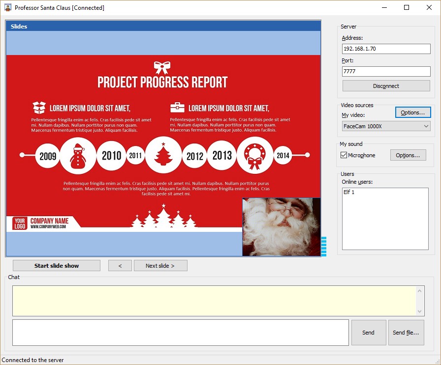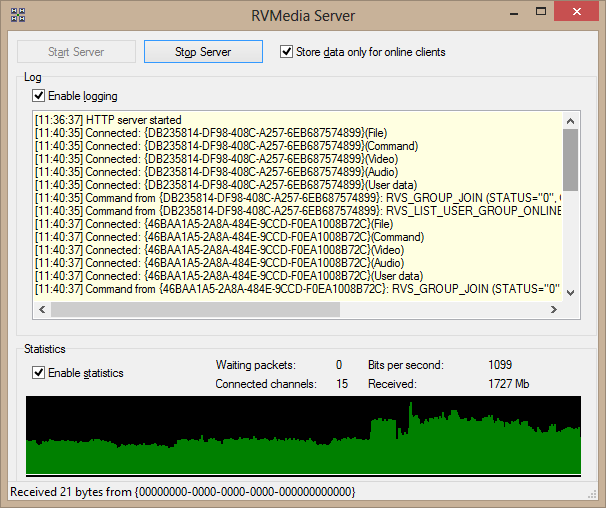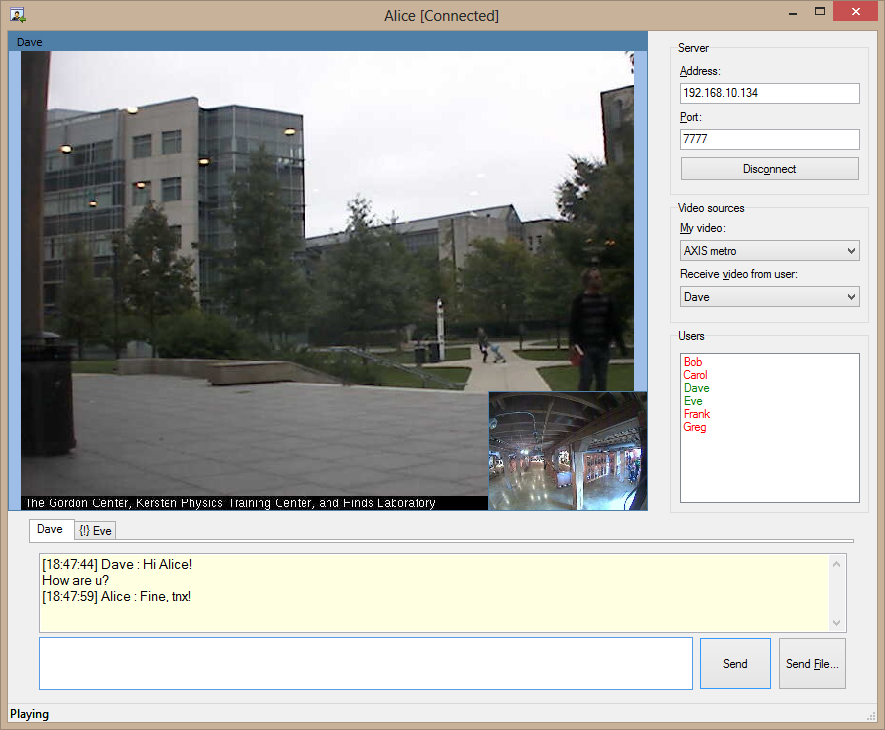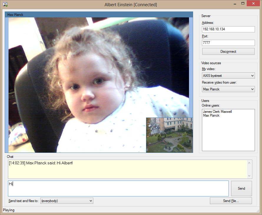 Unten finden Sie zusammengestellte Demo-Projekte, die zeigen, wie mithilfe von bestimmten Anwendungen Daten über das Netzwerk gesendet und empfangen werden können. Die Anwendungen bestehen aus je zwei Teilen: einem Server und einem Client. Clients können Videodaten (und andere Arten von Information) über das Netzwerk austauschen, sind jedoch nicht wie in den Demos oben direkt miteinander verbunden. Stattdessen besteht eine Verbindung über einen Media-Server.