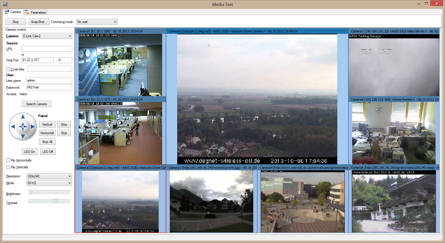 1. Kameras (zeigen Videos aus verschiedenen Quellen an)