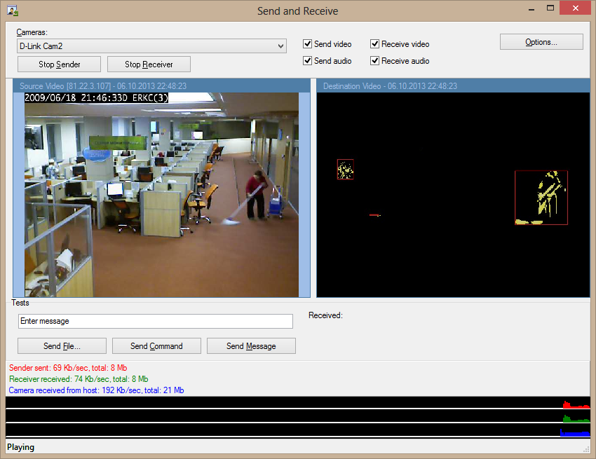 Unten finden Sie zusammengestellte Demo-Projekte, die zeigen, wie Anwendungen Daten wie Video, Audio oder andere Datenformen (wie Befehle und Dateien) per Netzwerk versenden und empfangen können.
