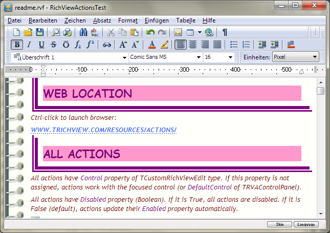 • wenn TRichView als Bedienung der Benutzeroberfläche fungiert (z. B. Formatinspektor in RichViewActions);